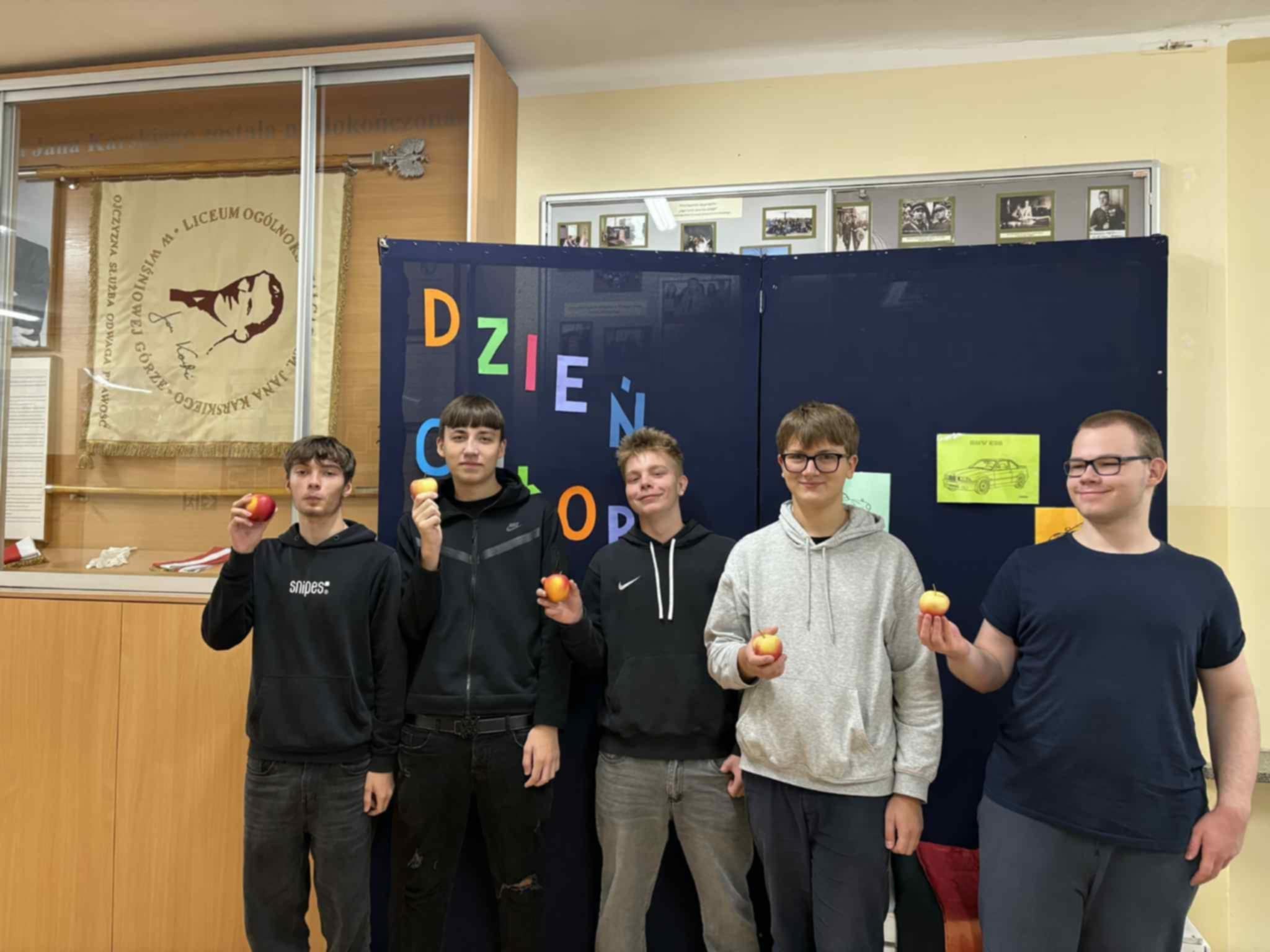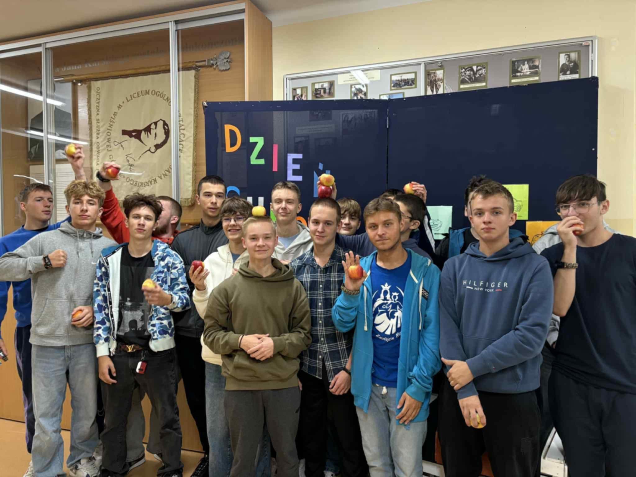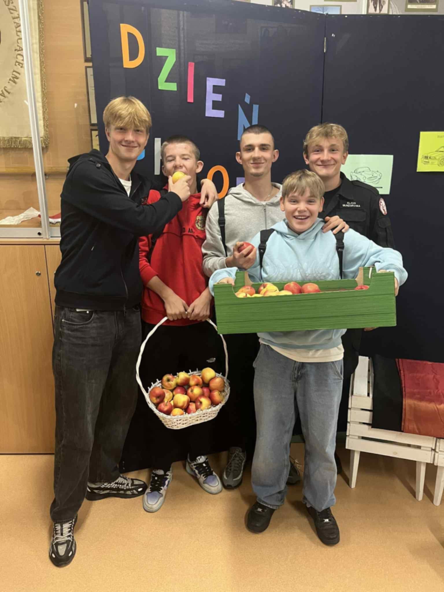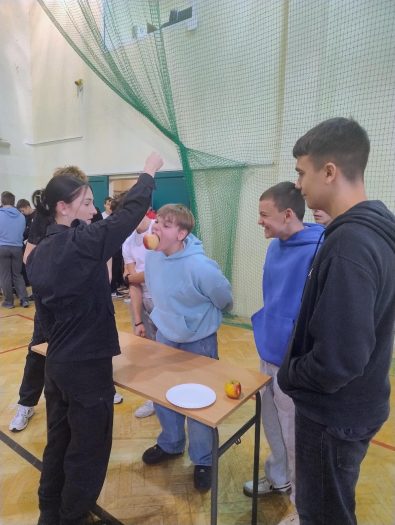 Chłopcy ścigali się na czas, pokonując slalom z jabłkiem na łyżce, musieli również przenieść jabłka bez użycia rąk i zdrowo schrupać smaczne jabłuszko umieszczone na sznurku. Działo się!