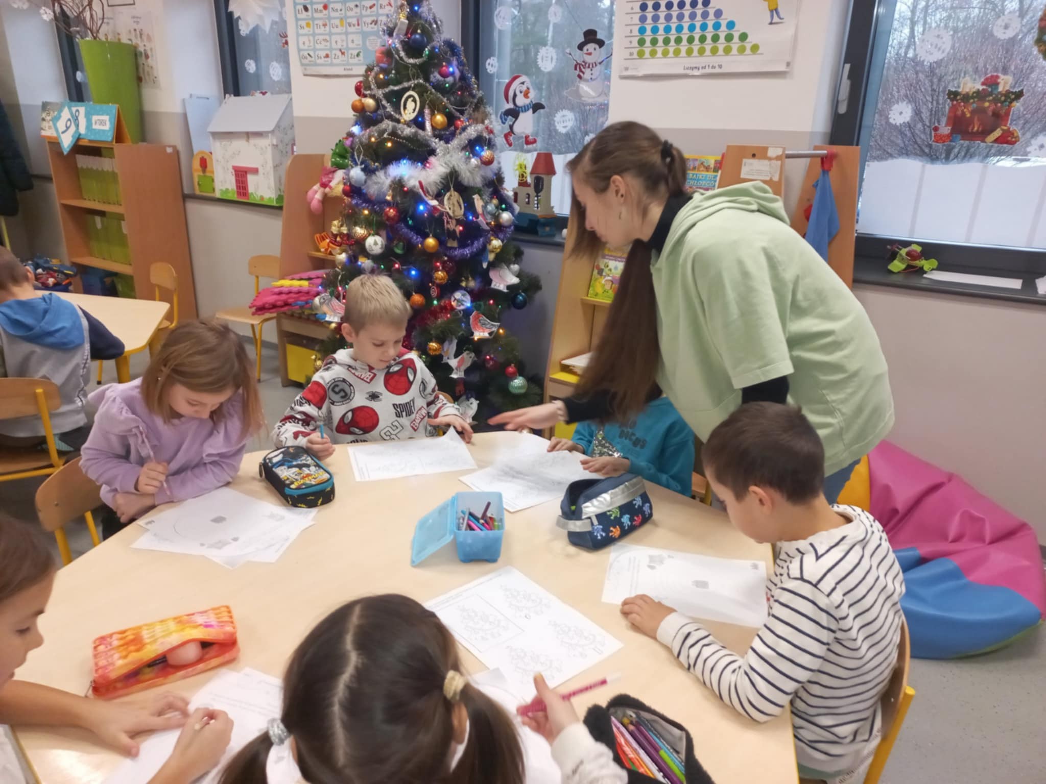 Na zakończenie spotkania maluchy wraz z Zosią, Natalią, Martą i Michaliną rozwiązywały świąteczne łamigłówki, które rozwijają spostrzegawczość, koncentrację oraz logiczne myślenie.