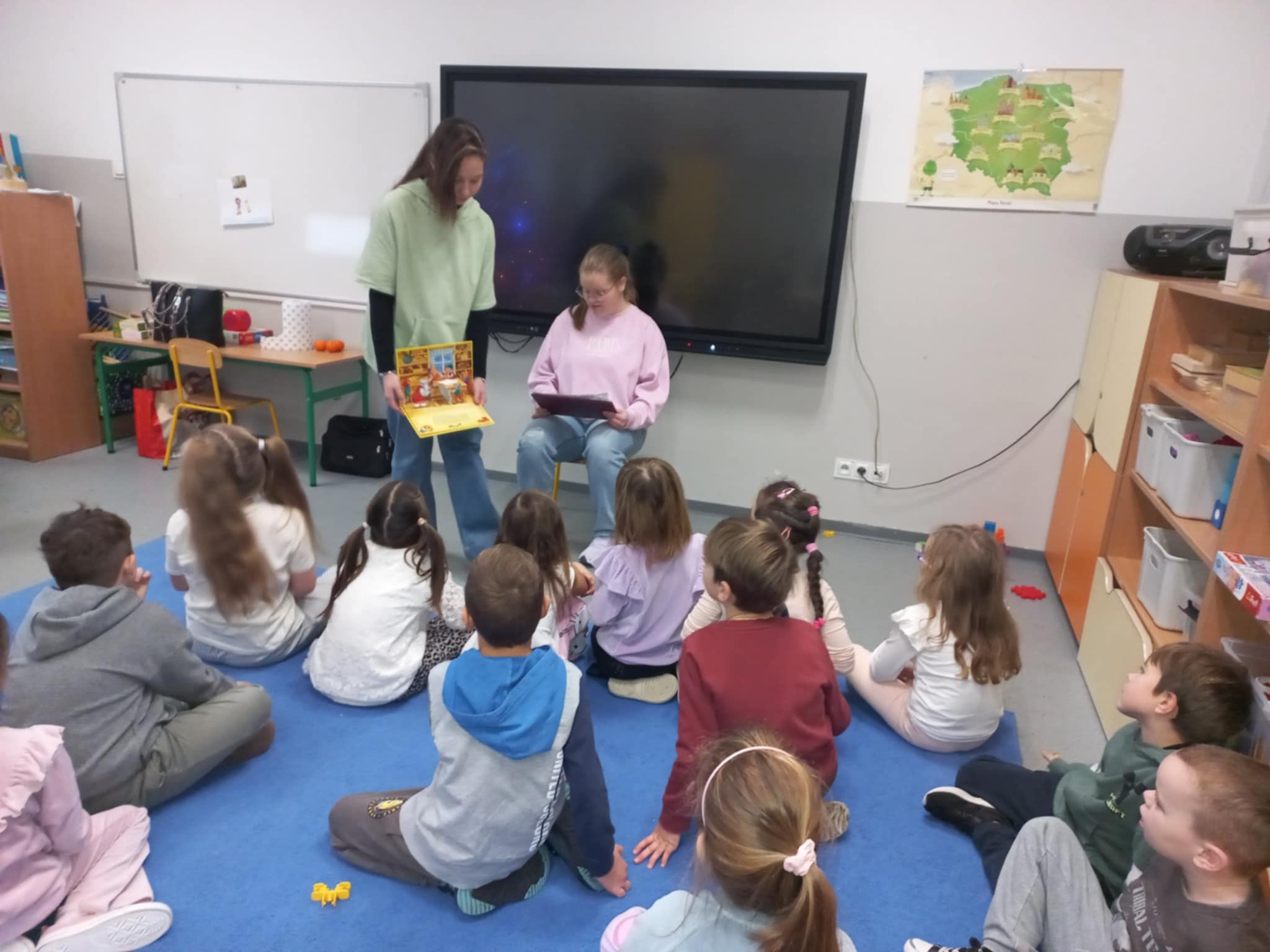 We wtorek 9 grudnia 2025r. uczennice z kl. III A wraz z nauczycielem bibliotekarzem odwiedziły w świątecznym nastroju dzieci z oddziału przedszkolnego przy Szkole Podstawowej im. Henryka Sienkiewicza w Wiśniowej Górze.