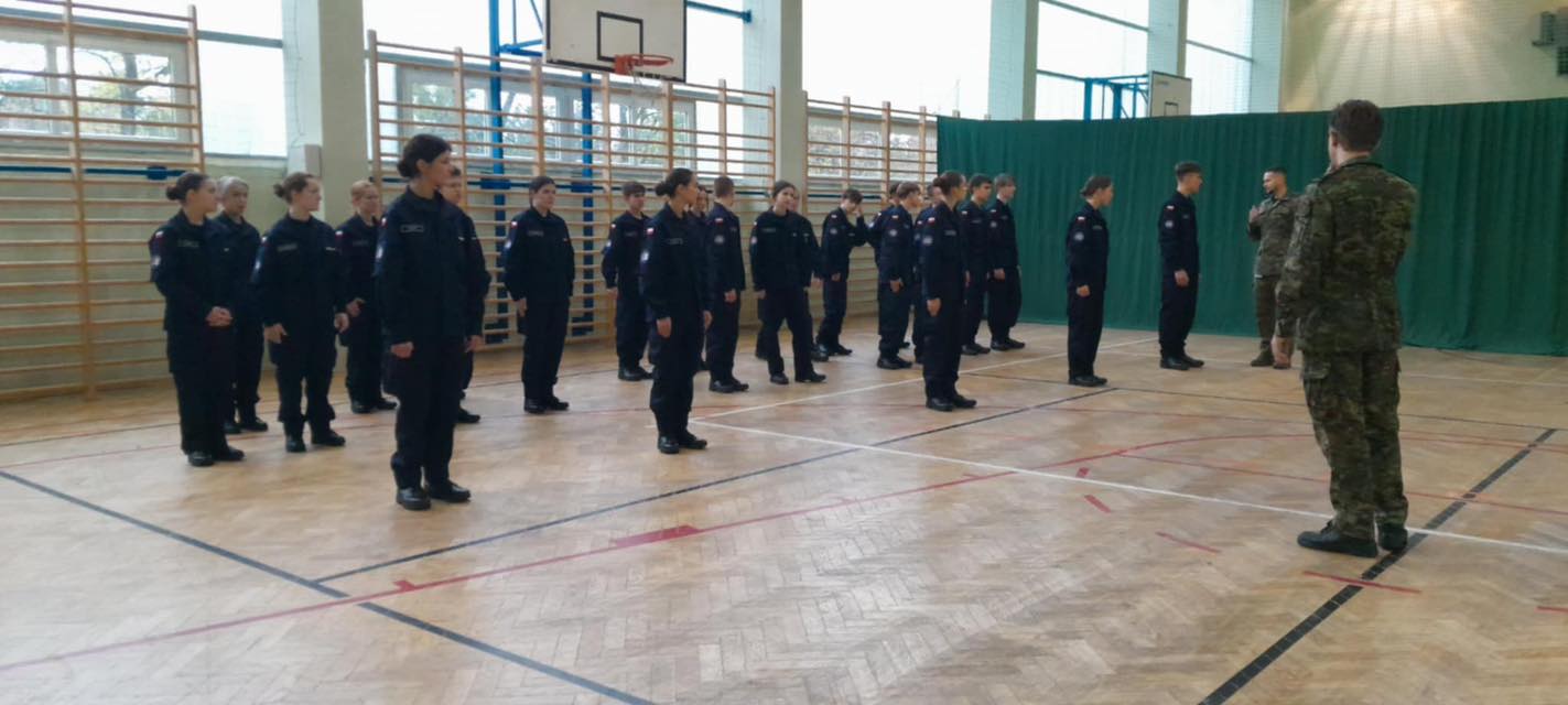 W dniu 24.10.25r. uczniowie klasy 1c o profilu mundurowym uczestniczyli w zajęciach musztry z przedstawicielami Nadwiślański Oddział Straży Granicznej.
