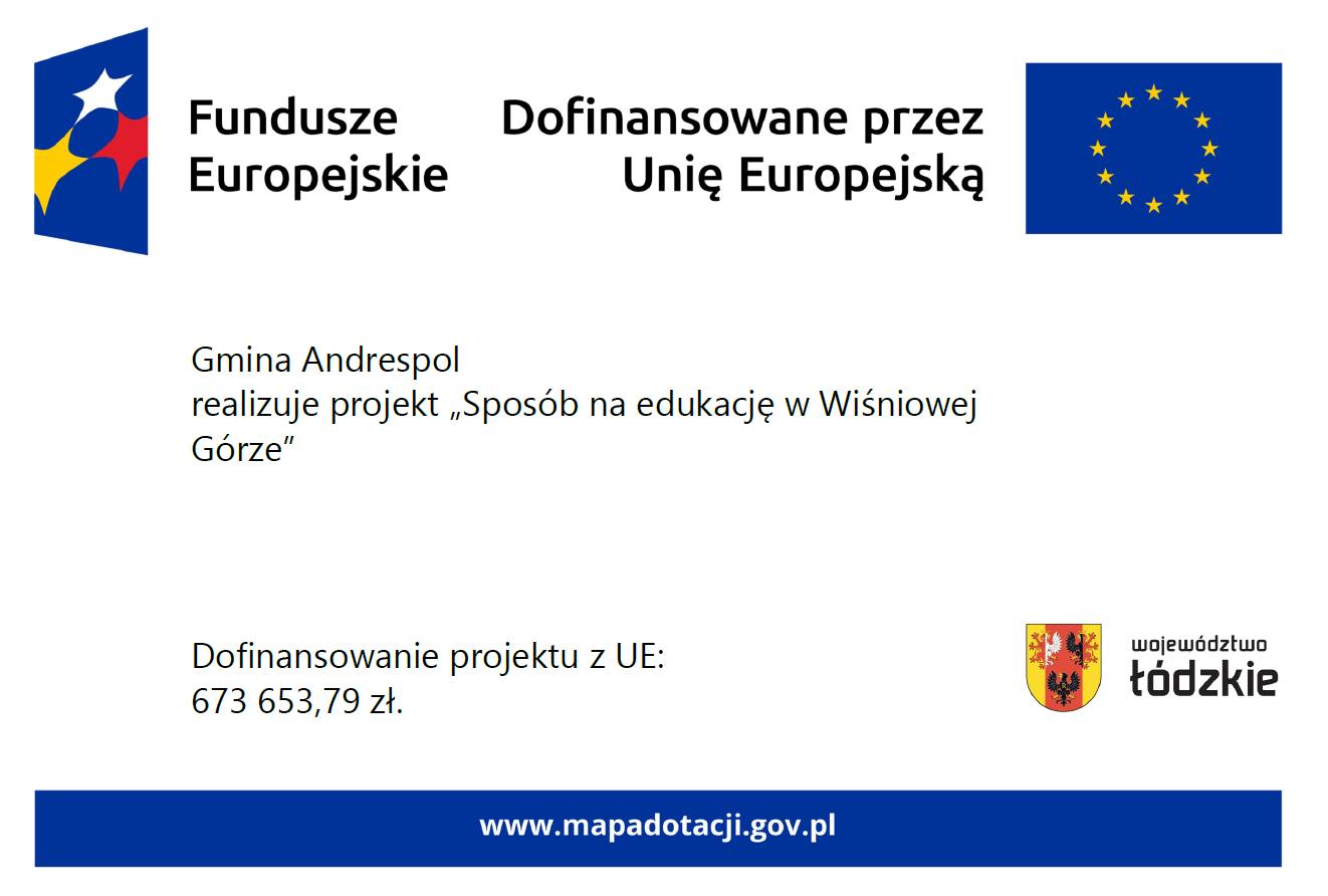 Projekt pn. „ Sposób na edukację w Wiśniowej Górze” współfinansowany jest ze środków Europejskiego Funduszu Społecznego Plus w ramach Programu Regionalnego Fundusze Europejskie dla Łódzkiego 2021- 2027.
