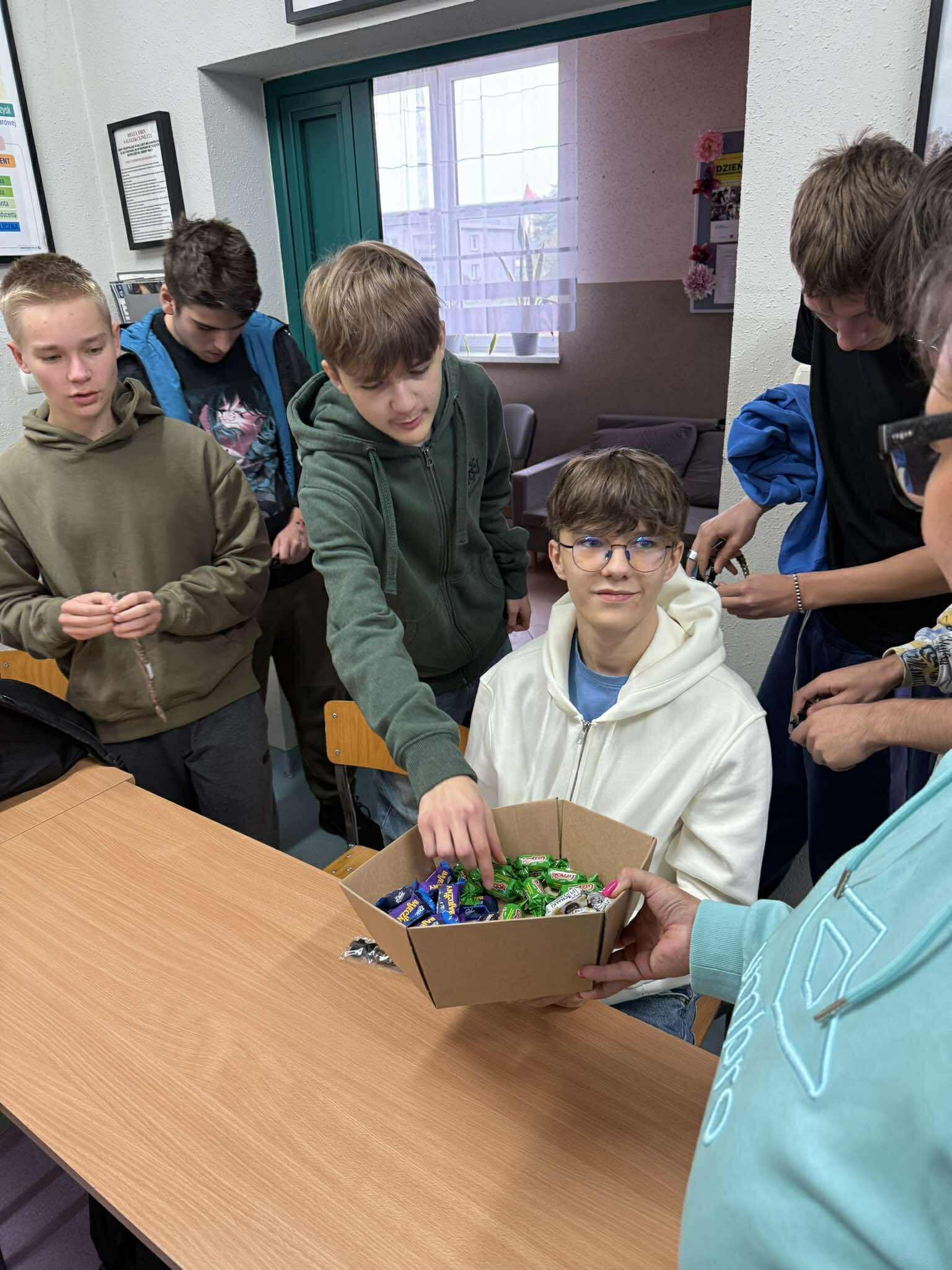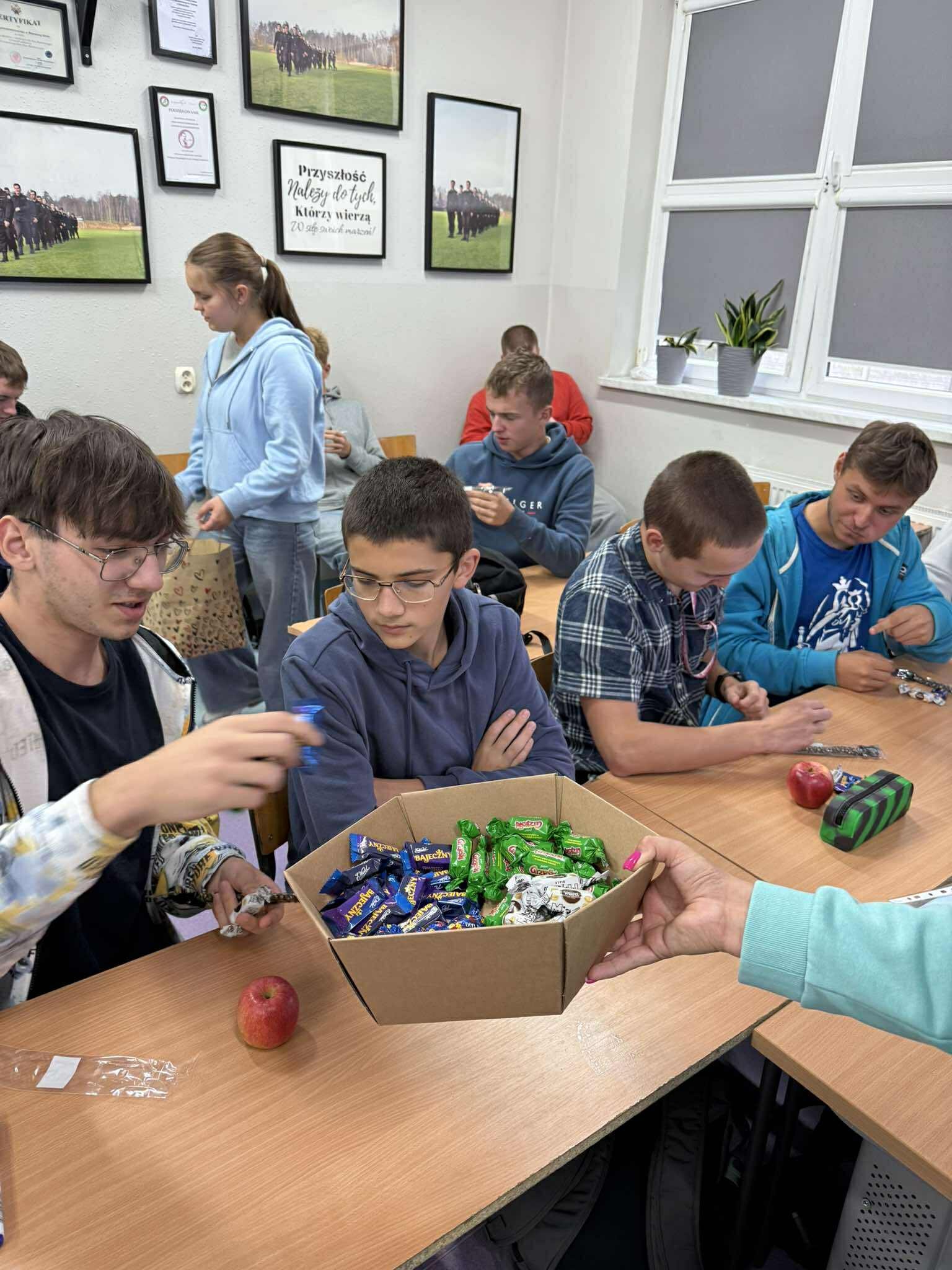 Miłym akcentem było wręczenie męskiej części klasy słodkości i „militarnych” prezentów z okazji Dnia Chłopaka.