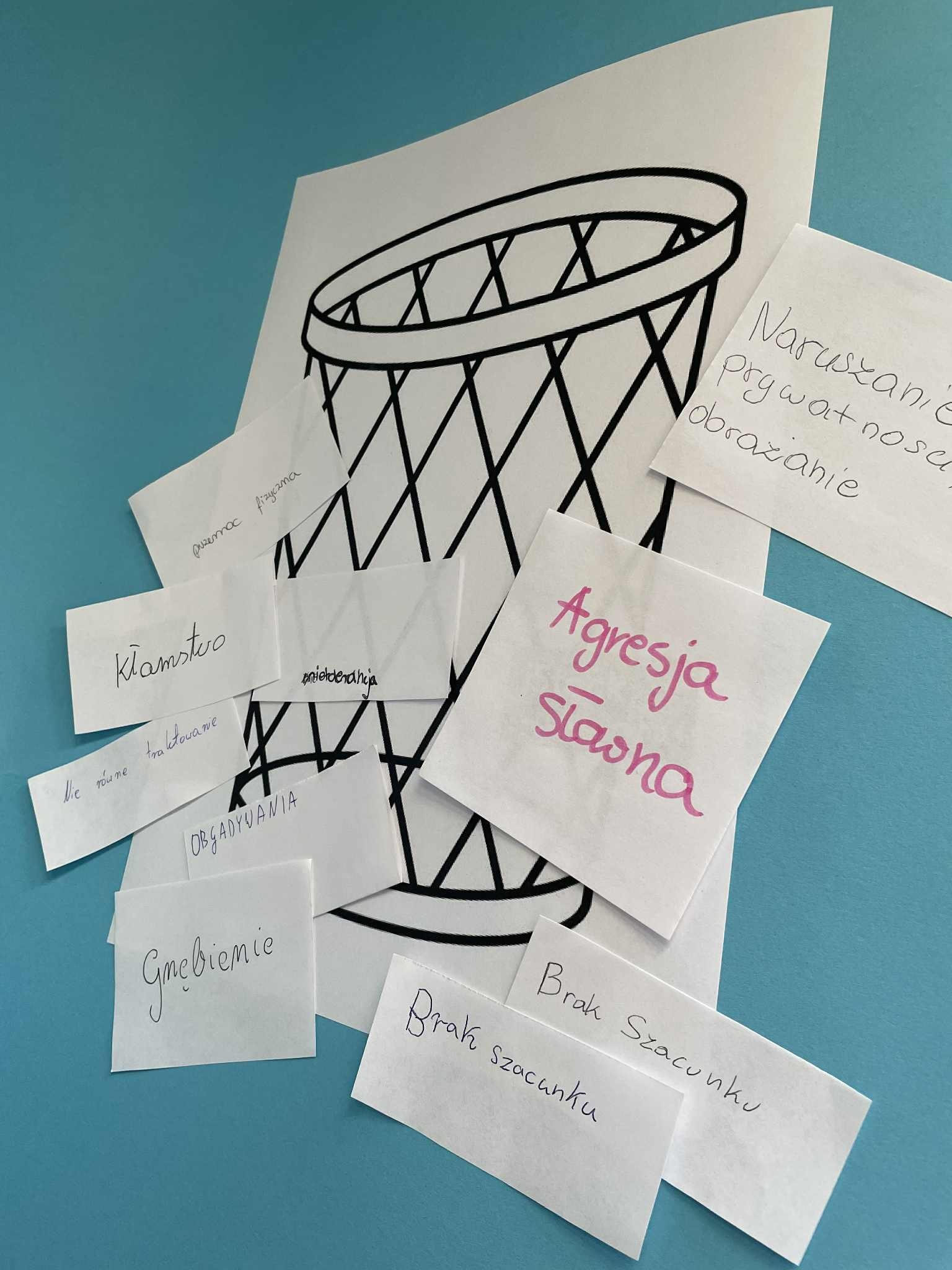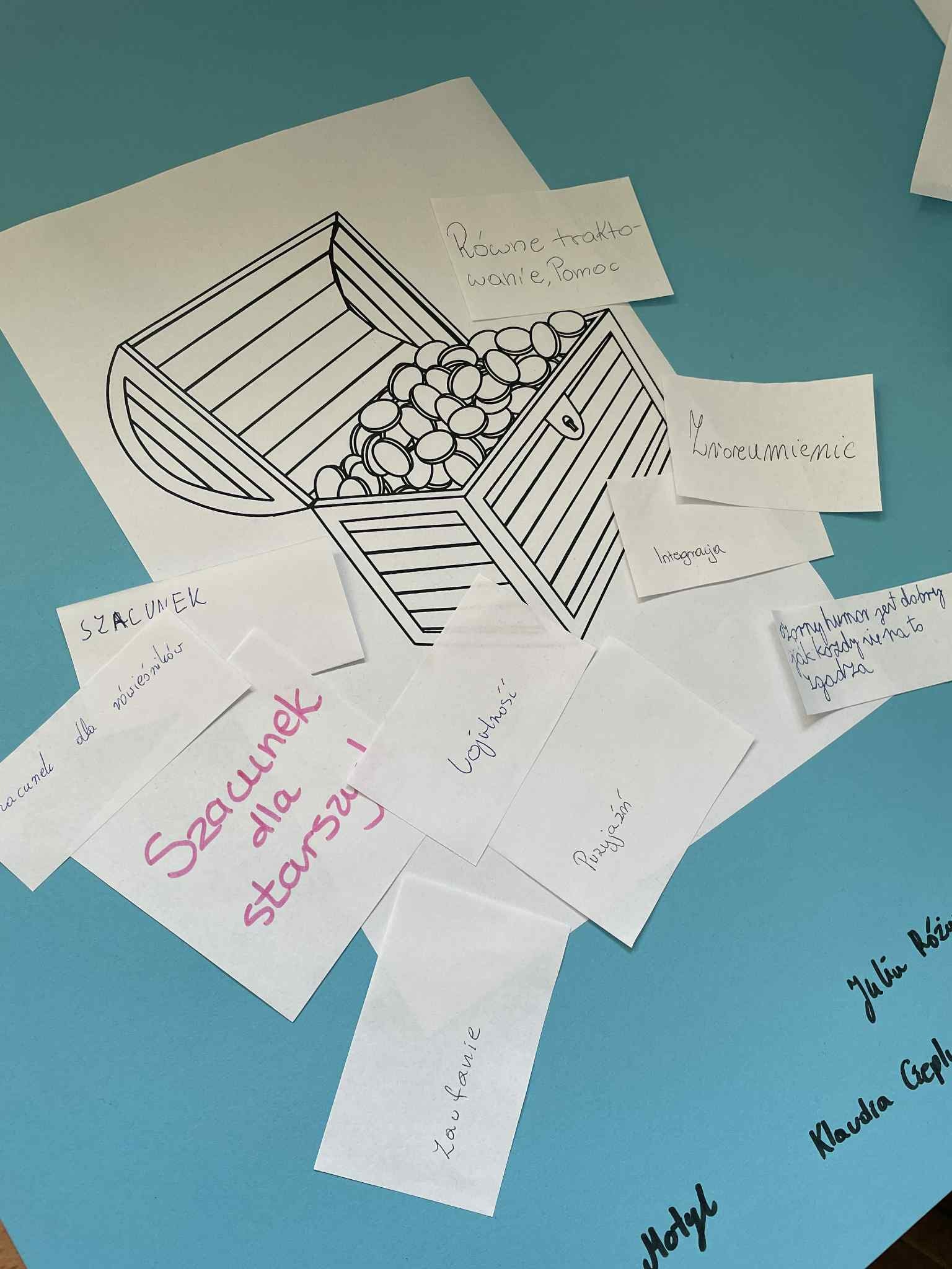 Uczniowie zapisywali na karteczkach wartości, którymi chcą się kierować w życiu oraz typy zachowań, które chcą wyeliminować ze swojego otoczenia.